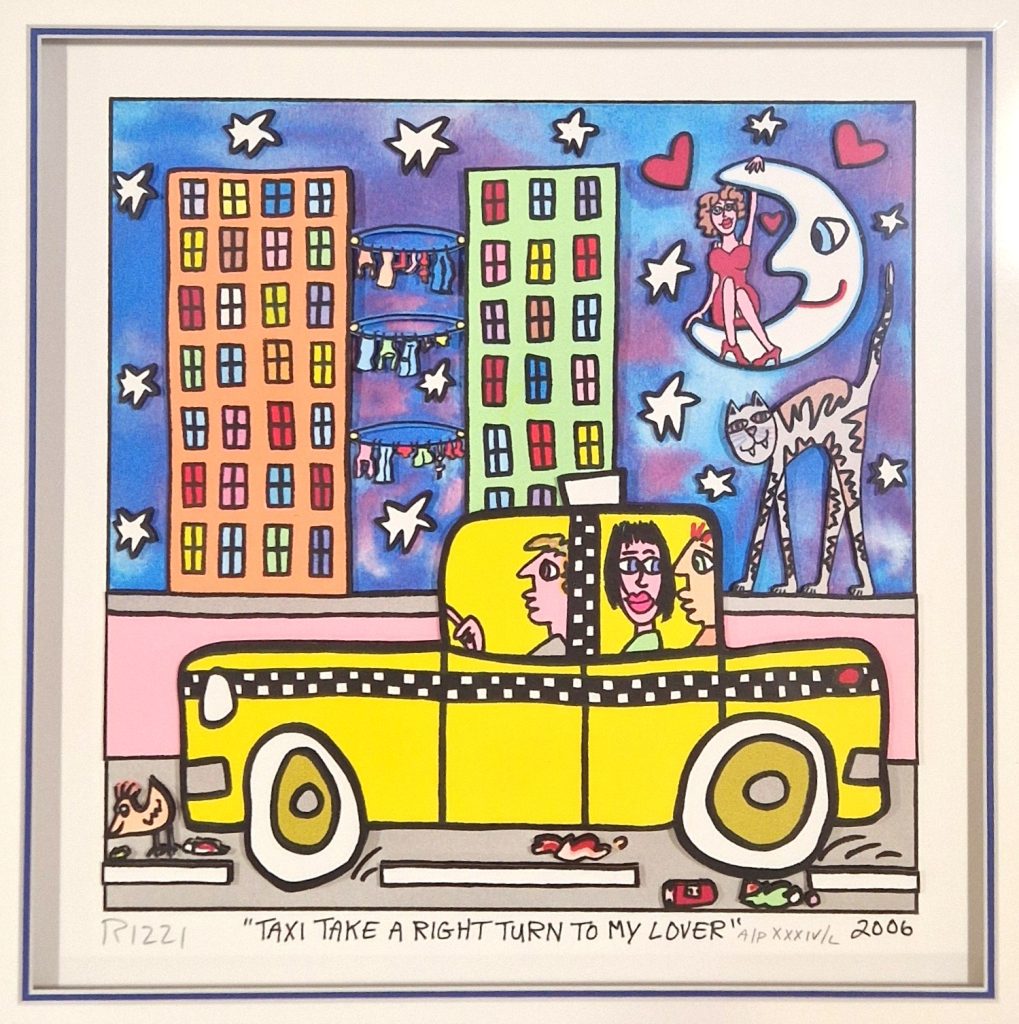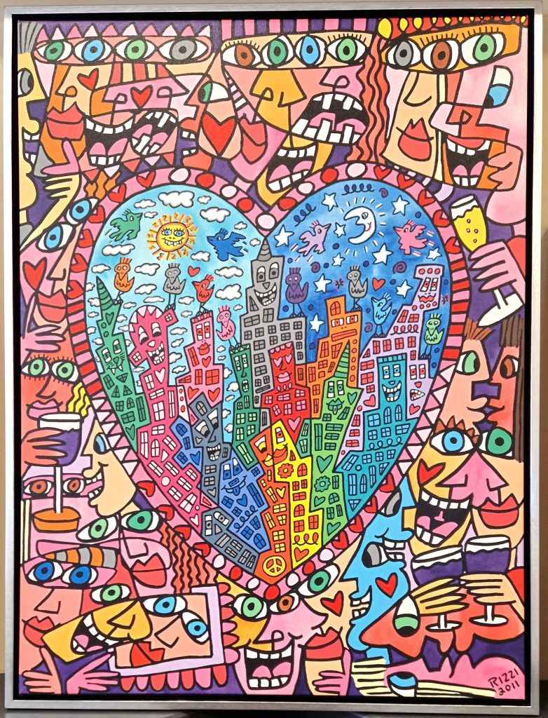 Im Laufe der Jahre entwickelte er seinen charakteristischen Stil immer weiter und erschuf ein Meer von farbenfrohen Bildern, die vor Lebensfreude nur so sprühen. Rizzi lebte und arbeitete bis zu seinem Tod am 26. Dezember 2011 in seinem Atelier-Loft im New Yorker Stadtteil SoHo. Er gehört bereits heute zu den Klassikern der Pop Art.